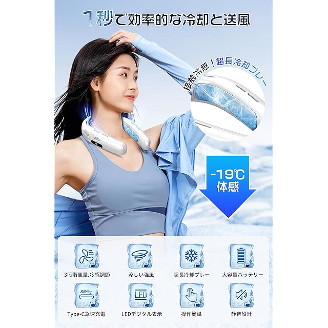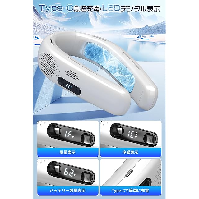 商品名:ORTCI ネッククーラー 冷却プレート 首掛け扇風機【2025年夏革新型&瞬間冷却·-19℃】涼しいネックファン 3段階風力&冷感調節 軽量静音 強力 大風量羽根なし4000mAh大容量バッテリー 長時間稼働 Type-C充電式 LEDディスプレ夏 暑さ対策 冷感グッズ 首 electric fan 車/通勤通学/スポーツ/山登り/釣り (ホワイト)