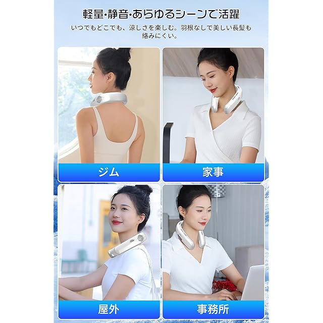 【アーム調整可能&羽根なし安心設計】この冷却ファン首は人間工学に基づいた首の弧のデザイン、中央部分は柔らかいシリコン素材で作られており、首の形状に合わせて調整でき、自然なフィット感を向上させ、小柄な方から大柄な方まで、あらゆる体型に対応します。大人、子供、太っても痩せても、快適な角度をカスタマイズすることができます。長時間の着用でも疲れにくくになります。首掛けクーラーは羽根なしとミニチュア排風口設計で、髪を巻き込まずに、異物を挟み込む事もご心配ありません。指が入る隙間がなく、事故を防ぐことができます。子供・大人にも安心してお使いいただけます。安全で快適な使用が可能、プレゼントに絶対喜ばれる夏ギフト!