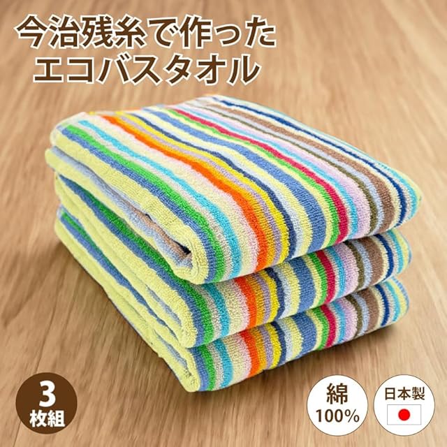 [ねむりの部屋] バスタオル 今治タオル 3枚組 残糸で作ったタオル 余った糸 残糸使用 エコ 吸水 速乾 大判 余り糸 日本製 家庭用