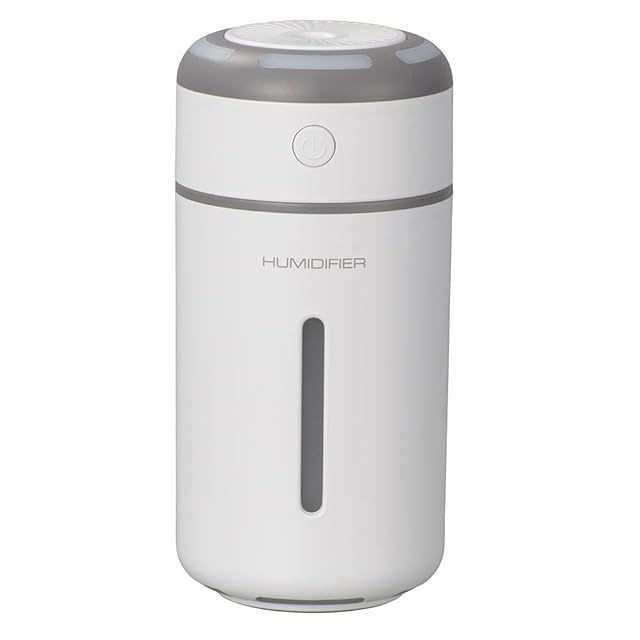 【 仕 様 】 ◆定格電圧/電流:DC5.0V/400mA ◆定格消費電力:2W ◆本体寸法:(約)直径68×高さ142mm ◆本体質量:約155g ◆容器容量:約230mL ◆加湿時間(満水時):約5時間(通常運転時)、約10時間(間欠運転時)
